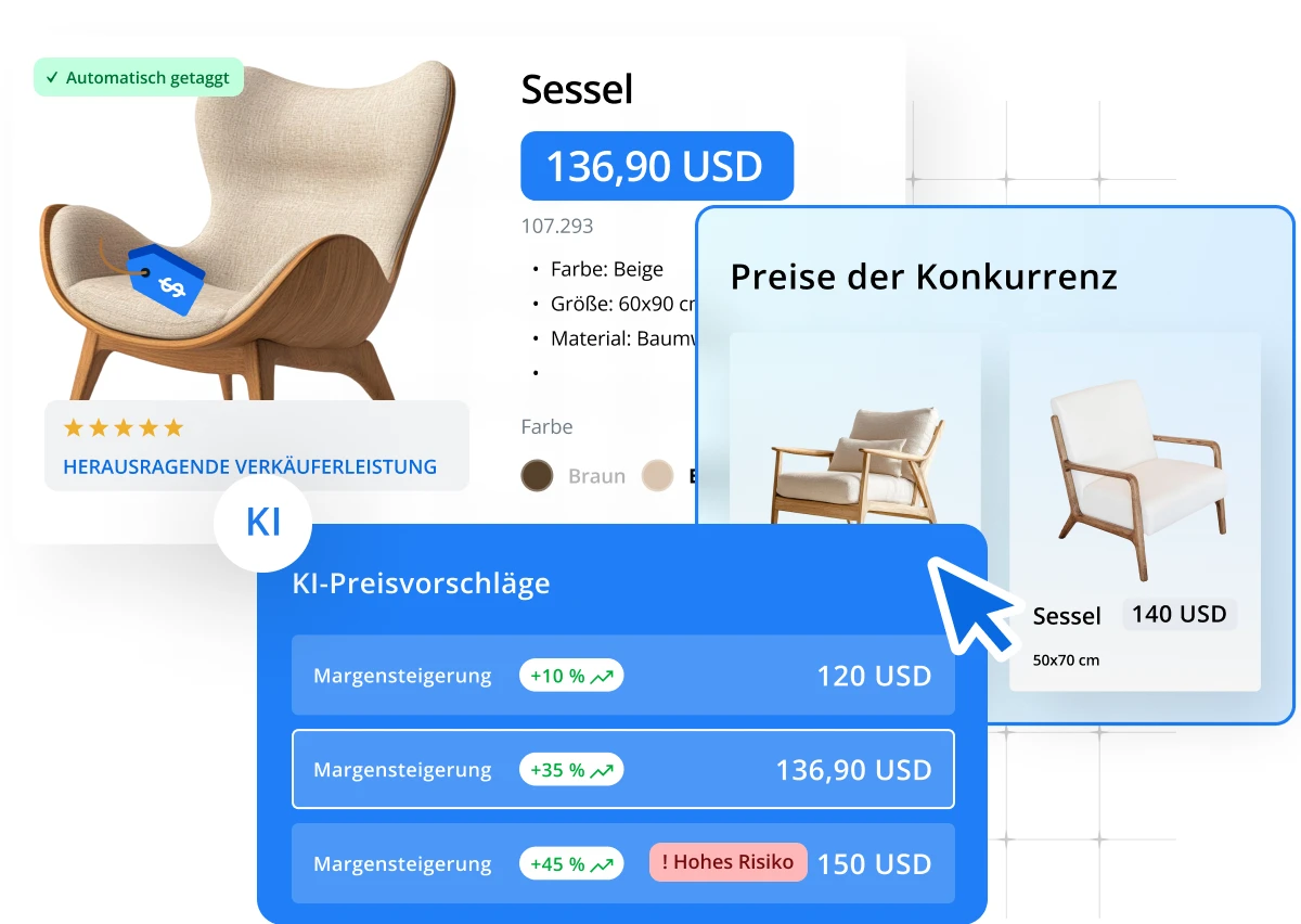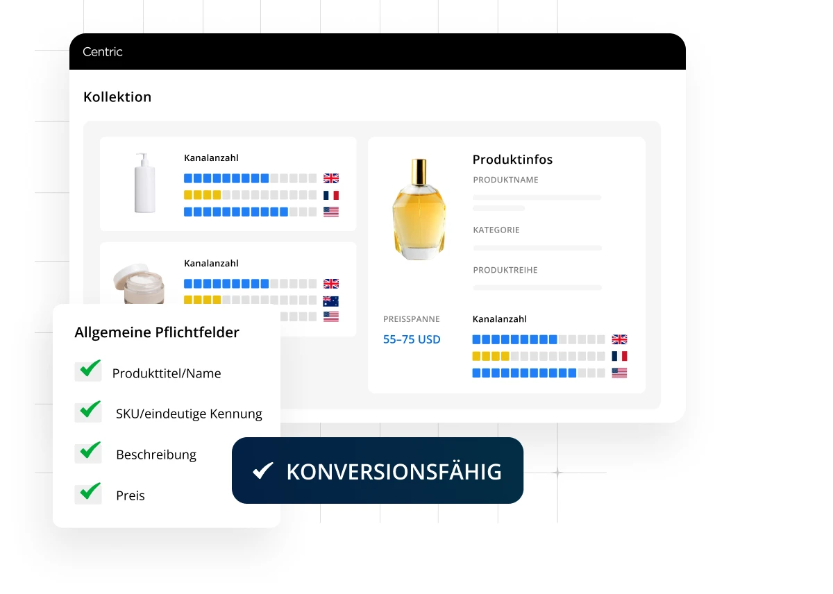 Steigern Sie die Konversionsrate mit präzisen Preisen, Lagerbeständen und Produktattributen auf allen Kanälen.