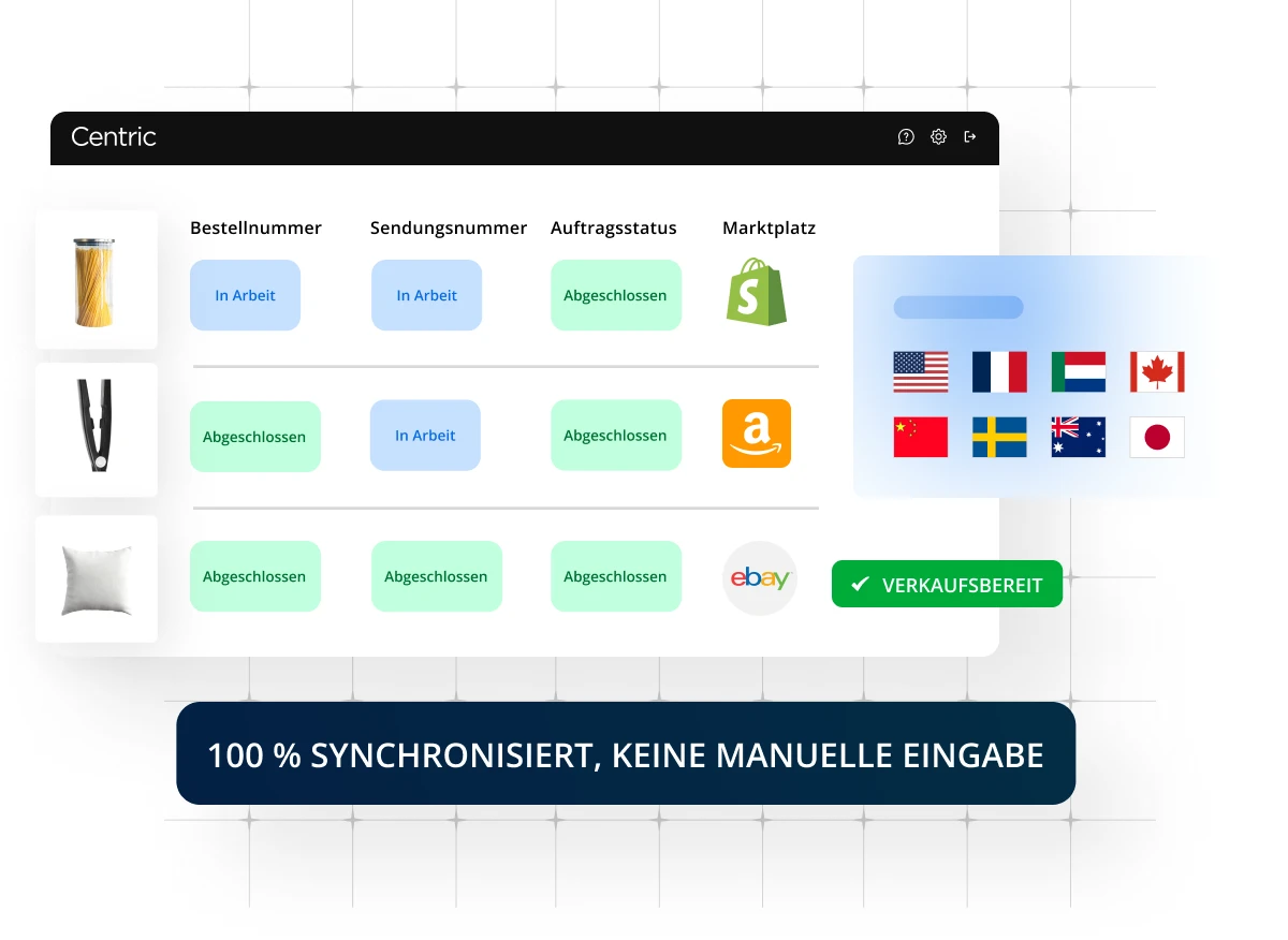 Beides. Bestellungen werden über eine API von Marktplätzen abgerufen, erscheinen in Ihrem ERP-/E⁠-⁠Commerce-System als native Bestellungen und werden mit Versand- und Verfolgungsdaten synchronisiert. So wird sichergestellt, dass Sie selbst umfangreiche Aufträge ohne manuelle Eingabe bearbeiten, erfüllen und verfolgen können. Das ist einer der Hauptgründe, warum sich Unternehmen für Centric entscheiden. Die Lösung deckt nicht nur die Content Syndication ab, sondern unterstützt auch den Geschäftsbetrieb.