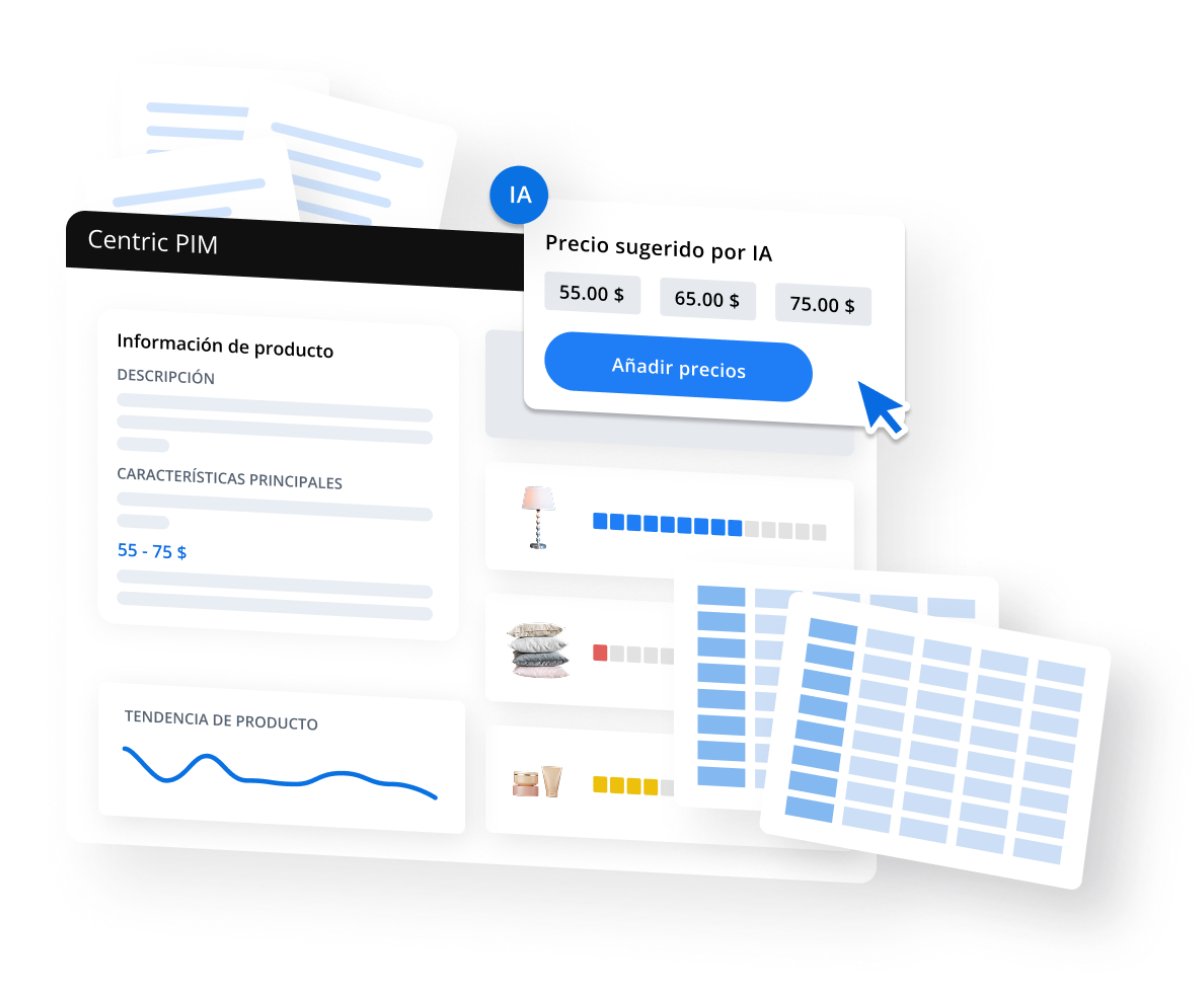 PIM y DAM son la columna vertebral de Centric PXM. Estructuran y enriquecen los datos y los activos con IA para luego transferirlos a Centric Sindicación para darles formato para más de 1 000 canales. Después del lanzamiento de los productos al mercado, la Analítica de Estantería Digital de Centric (DSA) hace seguimiento de fijación de precios, valoraciones, opinión de reseñas, presencia de contenido y tendencias de ingresos por unidades de mantenimiento de stock y envía los problemas y las oportunidades a PIM para rápida solución. Esto crea un bucle de retroalimentación impulsado por IA que mejora las tasas de publicación, la precisión y la velocidad de ventas a través del tiempo.