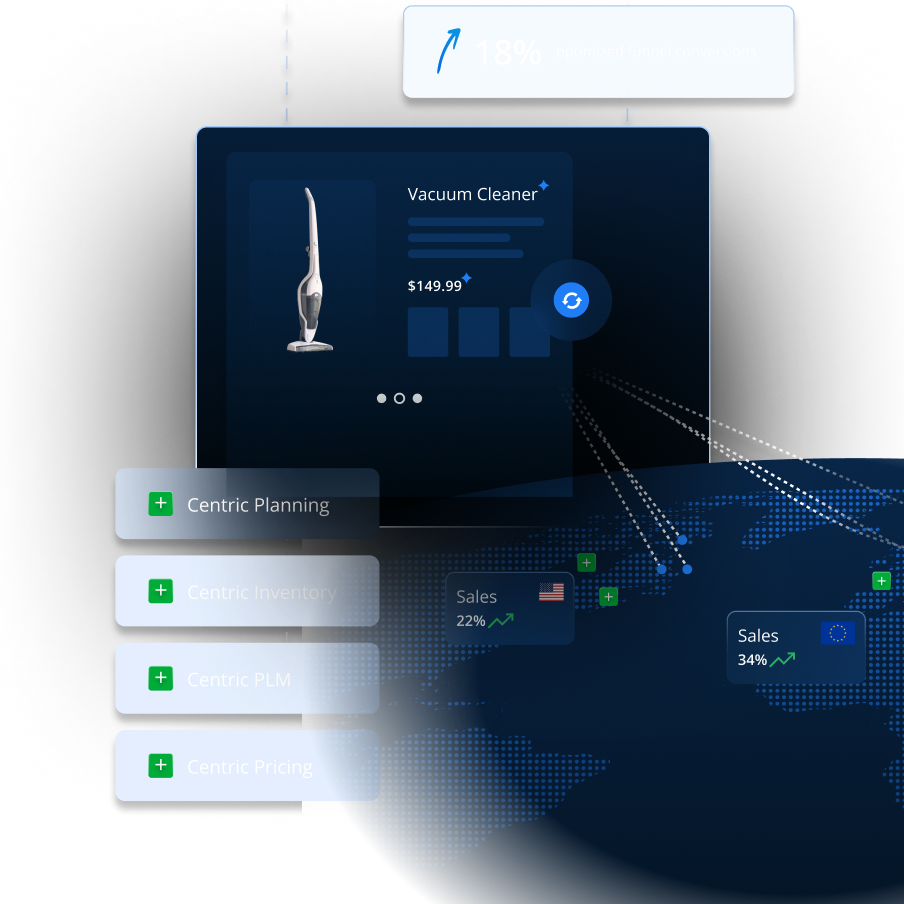 Collega le attività di pianificazione prodotto in ogni fase — dalla pre-season alla fine stagione, dall’ideazione allo sviluppo, fino al sourcing e alla vendita — con le soluzioni Centric: Market Intelligence, Planning, PLM e Pricing & Inventory Optimization. Un approccio continuo e integrato, pensato per sostenere la crescita.