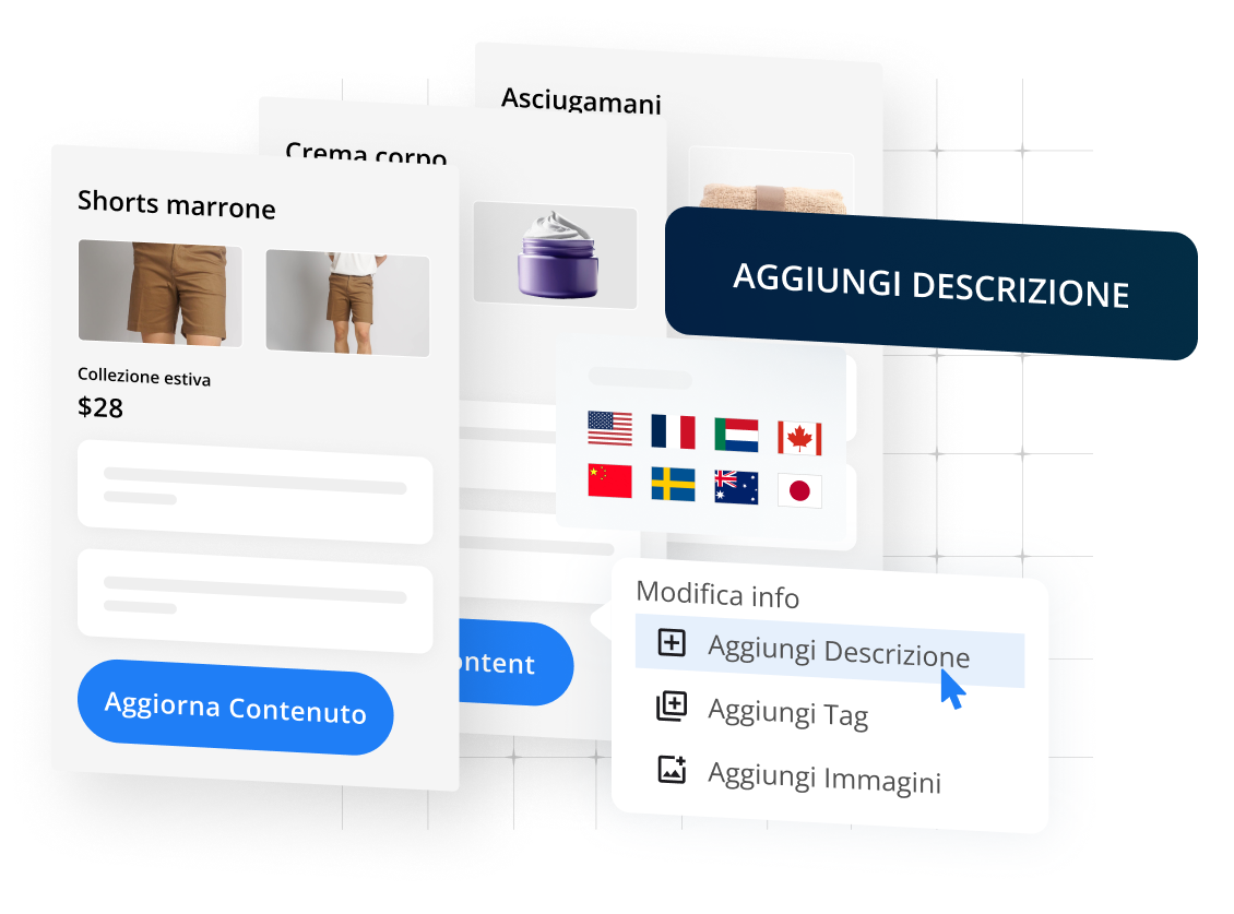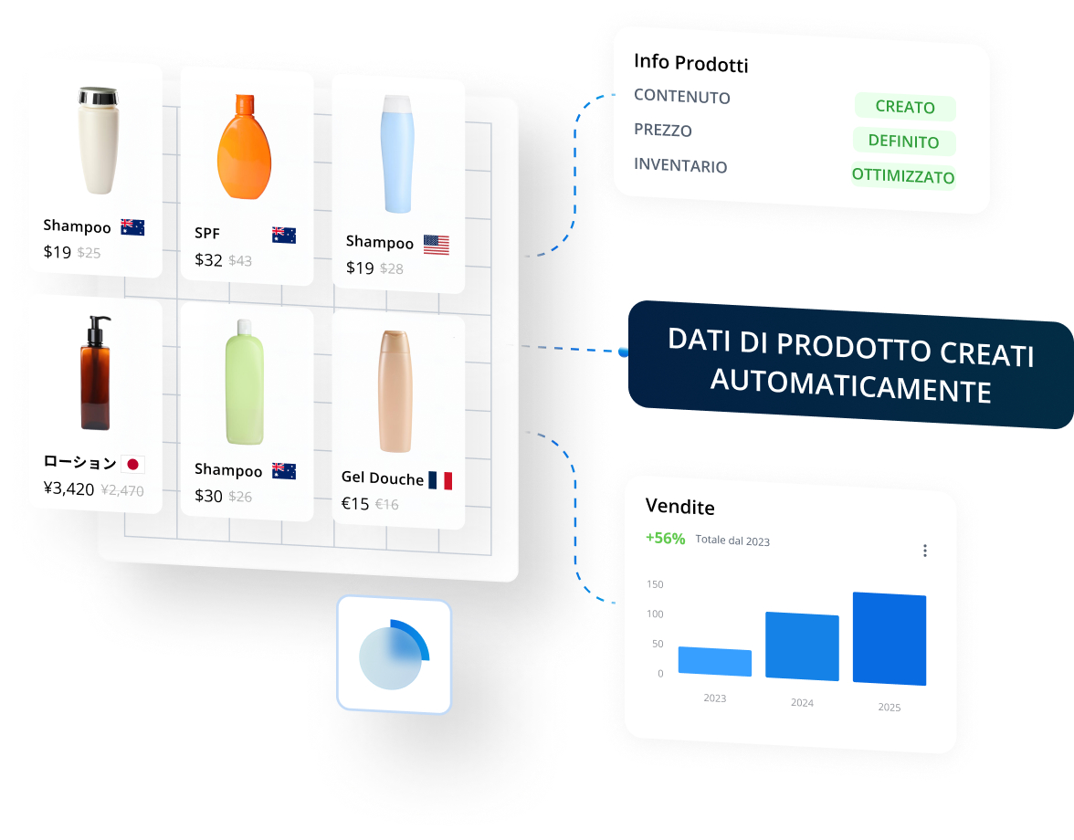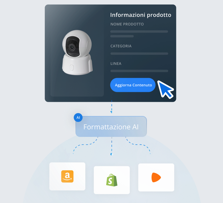 Contenuti di prodotto, automazione AI e insight. Veloci, accurati e ottimizzati.