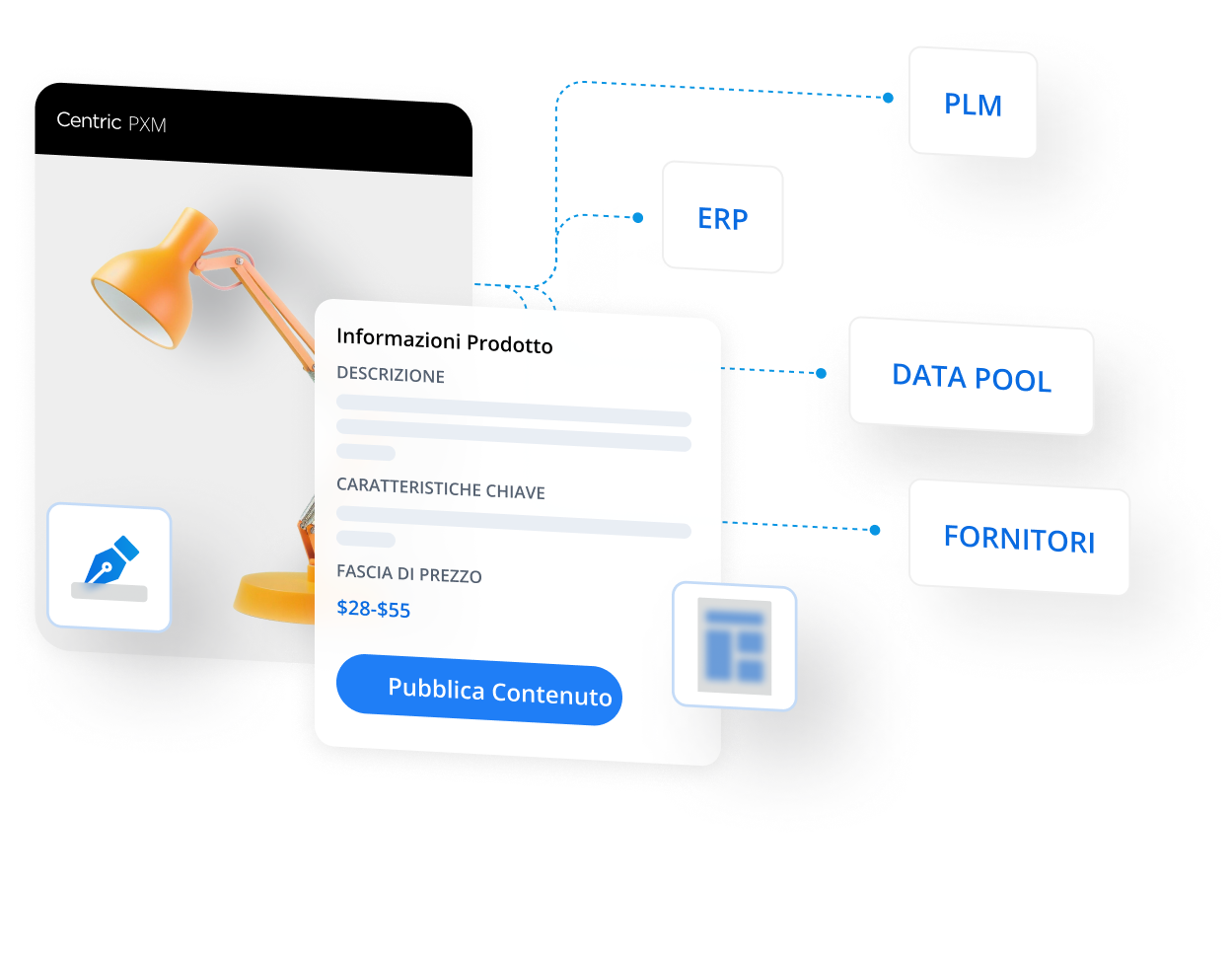 Funzionalità di Centric PXM per connettere i contenuti al commercio