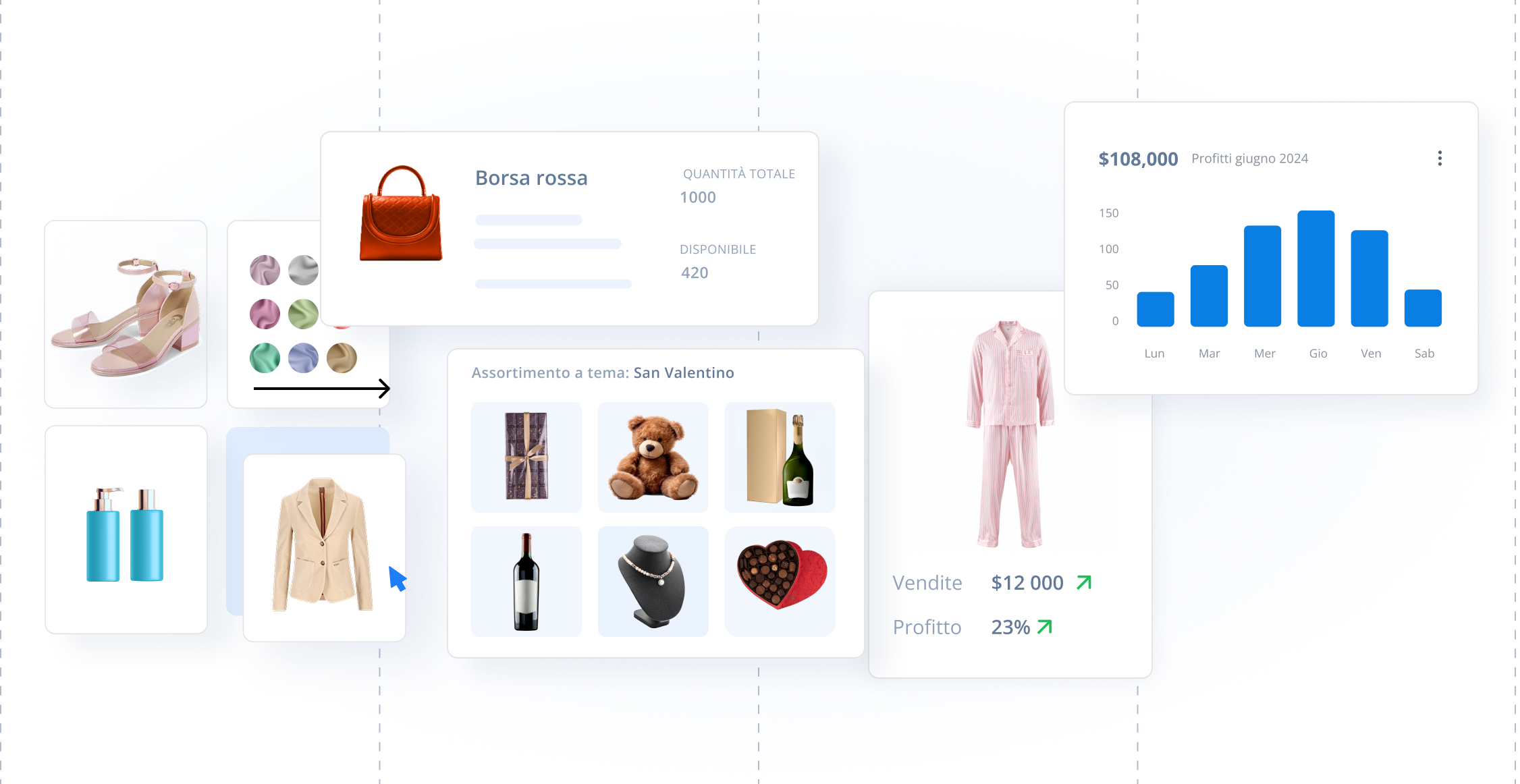 Crea e condividi rapidamente presentazioni e line sheet dal forte impatto visivo per presentare la tua collezione.