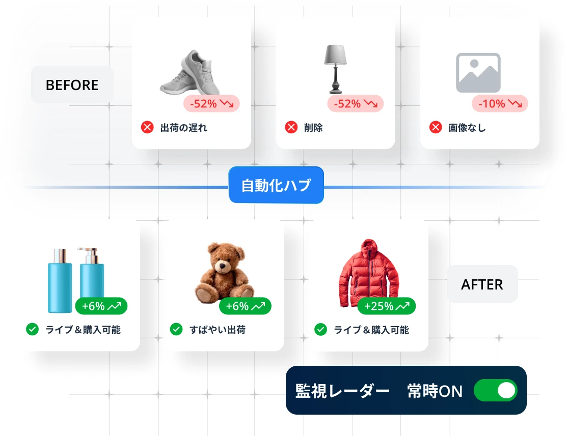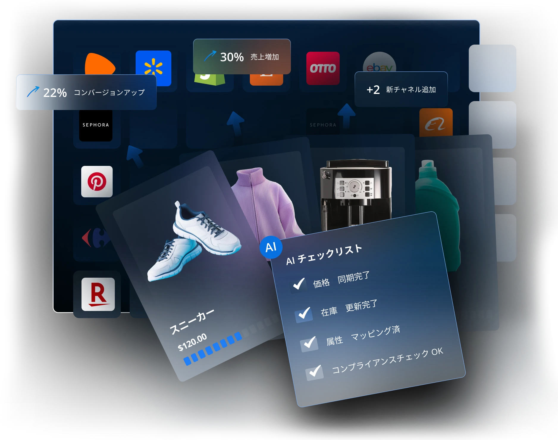 各チャネルに正確な価格、在庫状況、商品属性を提供し、コンバージョンを向上