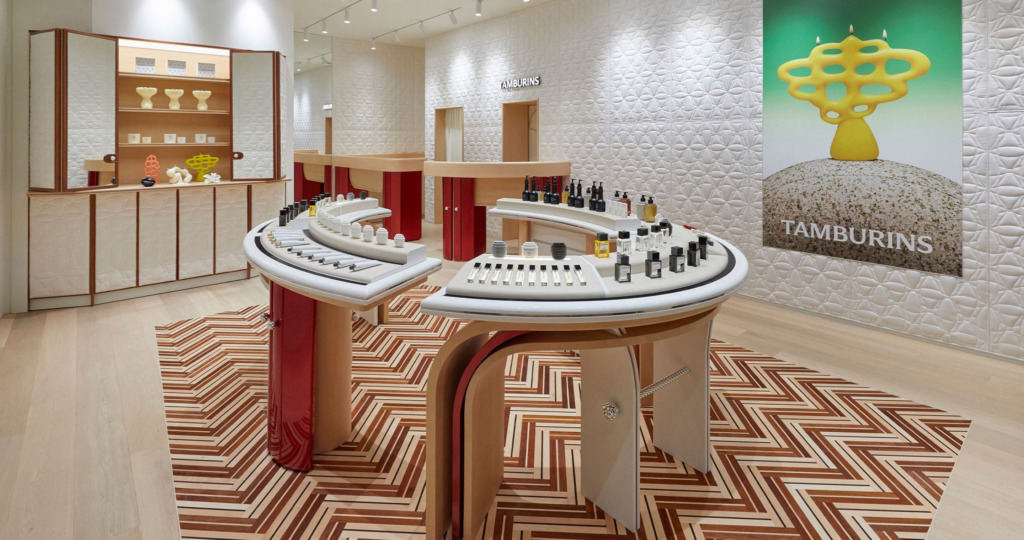 Tamburins is a South Korean brand owned by iicombined, the same company that owns Gentle Monster. The brand is known for its innovative approach to its products, from perfumes, hand creams, candles to diffusers. The distinctive characteristic of the brand lies in its effort to convey emotions through content that reimagines the beauty the brand seeks in the realms of space, objects, painting, and performance art. Tamburins’s retail stores offer a complete design and sensory experience for consumers, presenting their products as genuine works of artistic expression.