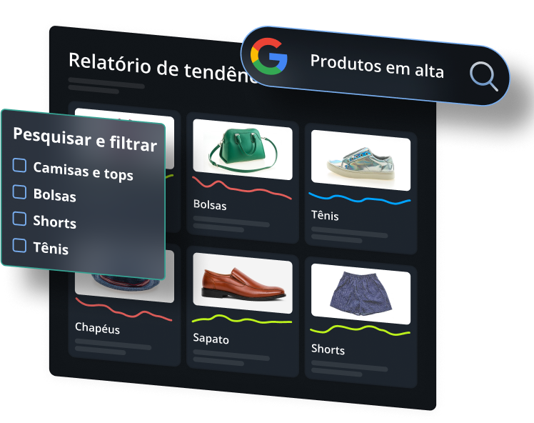 Descubra o que os consumidores estão buscando por meio de dados de vendas competitivas e pesquisa de mercado. Identifique quais tendências estão atingindo o ápice e aquelas que têm potencial de permanência.